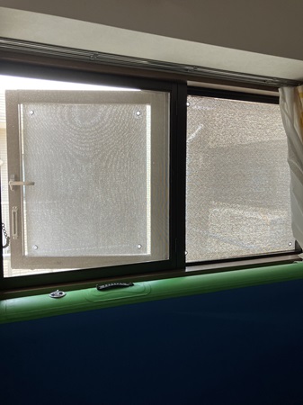 南面の窓に商品名「クールブレイド」
