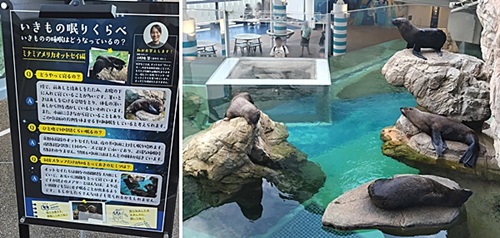夜営業に合わせて動物たちの眠りに関するパネルが設置されてました。
