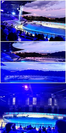 昼間とは雰囲気がガラッと変わったイルカスタジアムでは