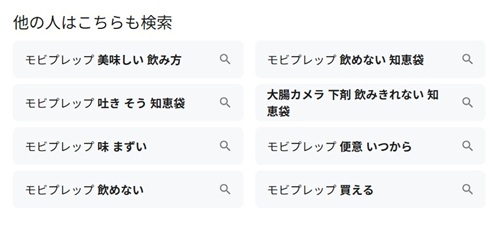 Googleで「モビプレップ おいしい」と検索した結果です。