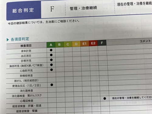年に一回受け取る通信簿は健康診断の結果表です。