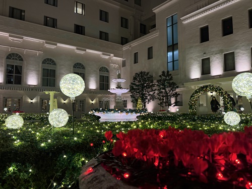 中庭ではクリスマス仕様のイルミネーションが開催されており、