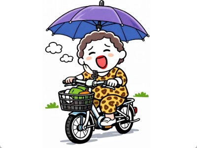 雨の日に車道を走るオバちゃん、あまり見ませんよね。