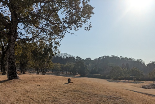 お山で狸と出会う