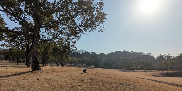 お山で狸と出会う