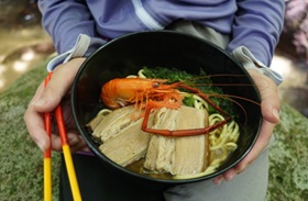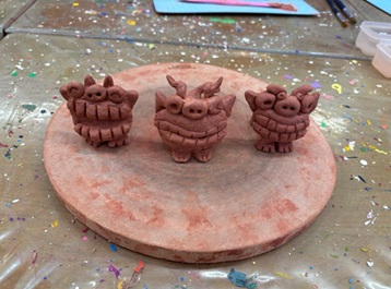 粘土でシーサー作りを体験後、焼いてもらっている間に